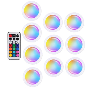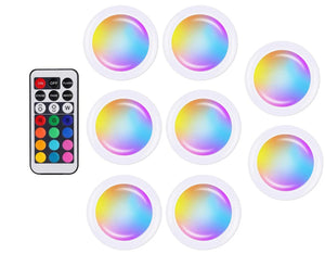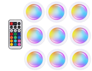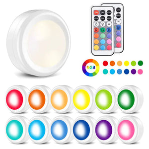 Transform your space with versatile Cabinet LED lighting. With 12 vibrant colors and the option to use a remote control or touch for on/off, brightness and color choice. These these dimmable LED puck lights are perfect for any setting. Easily install with stickers or expansion screws and light up your kitchen, closet, cabinet, bookcase, utility room, jewelry display case, basement, and more!